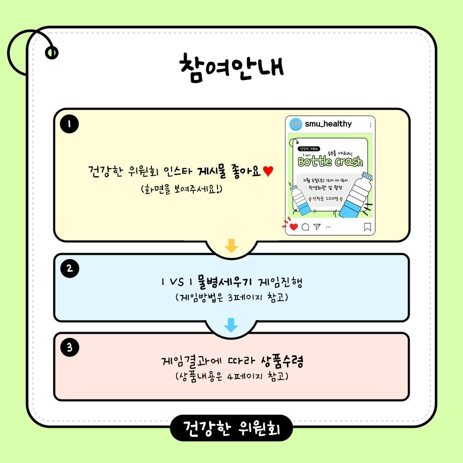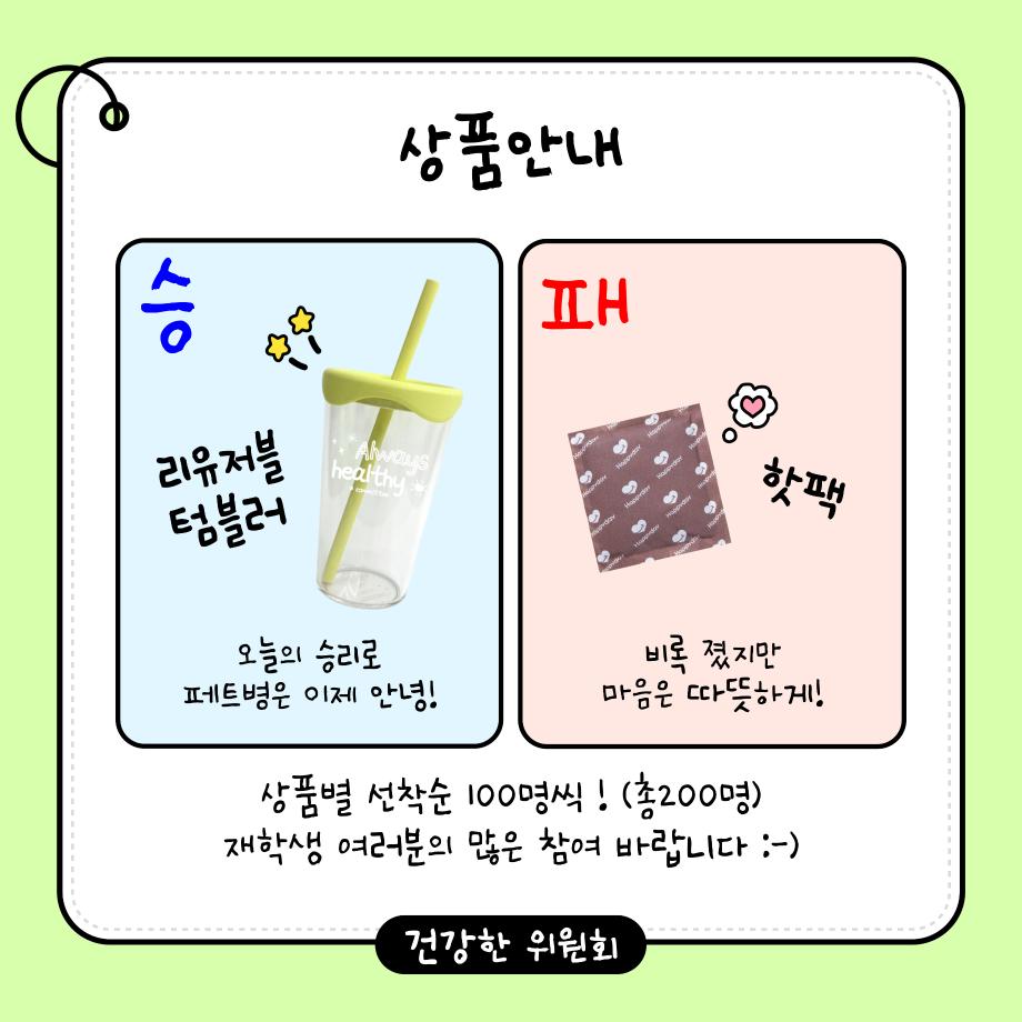 본문 시작 홈으로 공지사항 학생위원회 개요 학생위원회 소개 공지사항 활동결과 홈페이지가이드 프로그램 계획 프로그램 계획 세명대학교 공지사항 프로그램 계획 페이스북 트위터 프린트 [건강한 위원회] 보틀크래시 학생처 333 2025-11-05 [건강한 위원회] 보틀 크래시 일시: 2025.11.05 12시~15시 장소: 학생회관 앞 광장 목록 이전[맛있는 위원회] 얼죽아 모임에 초대합니다 다음 [용감한 위원회] 창업? 다 이루어질지니~ 담당부서 : 장학복지팀 담당자 : - 연락처 : 043-649-1142 최종수정일 : 2024-10-26 만족도조사 만족도 조사 이 페이지에서 제공하는 정보에 대하여 만족하시나요? 매우만족 만족 보통 불만족 매우불만족