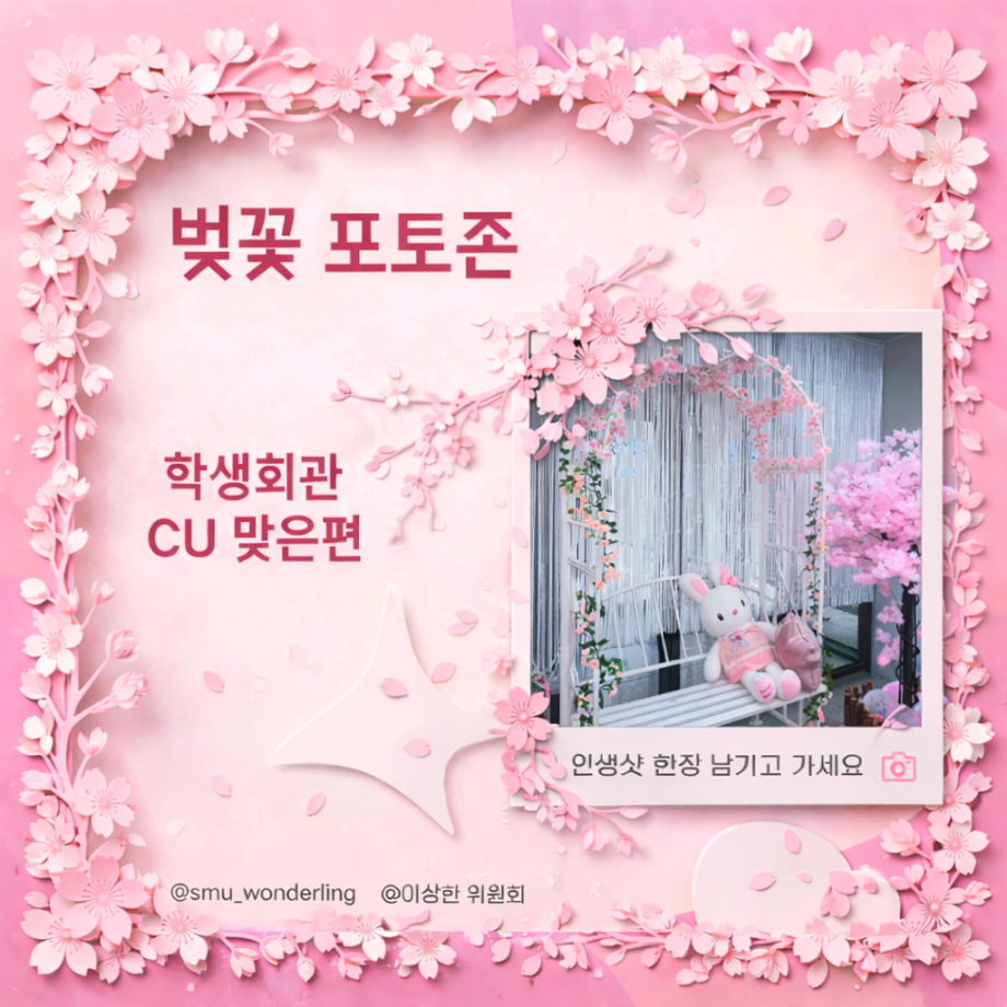 바쁜 일상에 지친 여러분들을 위해 이상한 위원회가 준비 했습니다! 벚꽃 시즌을 맞이해 학생식당에서 인생샷 남기고 가세요!!
