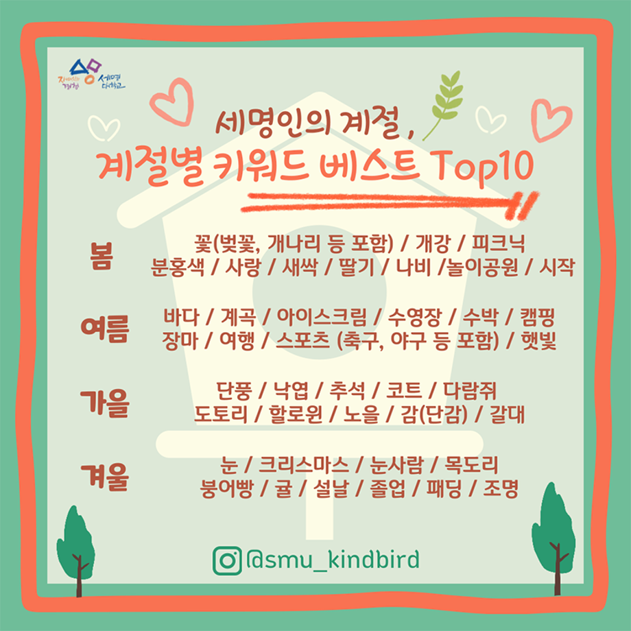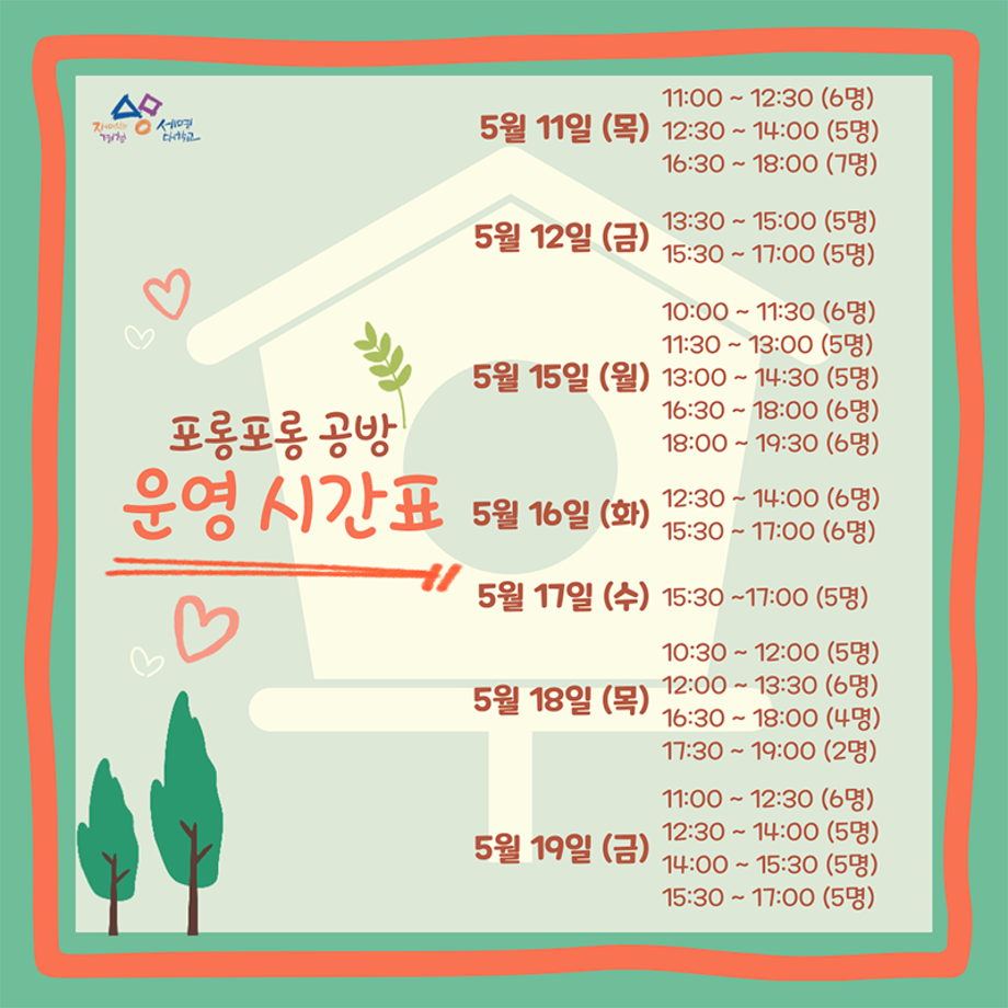 본문 시작 홈으로 공지사항 학생위원회 개요 학생위원회 소개 공지사항 활동결과 홈페이지가이드 프로그램 계획 프로그램 계획 세명대학교 공지사항 프로그램 계획 페이스북 트위터 프린트 [착한 위원회] 포롱포롱 공방 체험자 모집 학생처 1755 2023-05-11 [착한 위원회] 포롱포롱 공방 체험자 모집 운영기간 : 5/11(목) ~19(금) 신청방법 : 착한 위원회 인스타그램 DM신청 목록 이전[착한 위원회] '세명인의 계절을 들려줘' 설문조사 시행 다음 [ 용감한 위원회 ] 참깨마켓 운영 담당부서 : 장학복지팀 담당자 : - 연락처 : 043-649-1142 최종수정일 : 2024-10-26 만족도조사 만족도 조사 이 페이지에서 제공하는 정보에 대하여 만족하시나요? 매우만족 만족 보통 불만족 매우불만족