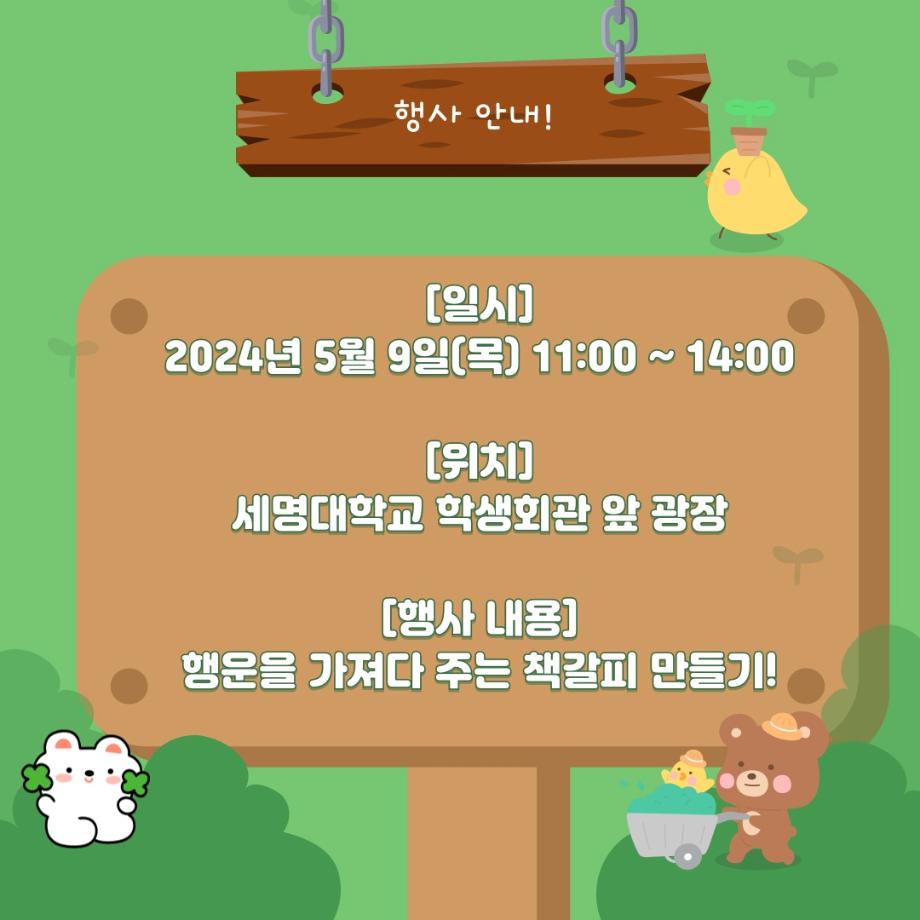 본문 시작 홈으로 공지사항 학생위원회 개요 학생위원회 소개 공지사항 활동결과 홈페이지가이드 프로그램 계획 프로그램 계획 세명대학교 공지사항 프로그램 계획 페이스북 트위터 프린트 [꽃피는 위원회] 행운을 가져다주는 책갈피 만들기 학생처 1784 2024-05-09 행사명 : 행운을 가져다주는 책갈피 만들기 행사일시 : 2024.05.09(목) 11:00시~14시 행사장소 : 학생회관 앞 광장 학생위원회 부스 참여방법 : 꽃피는 위원회 활동 설문조사 완료 인증 후 책갈피 만들기 참여 목록 이전[약속하는 위원회] 약속편지 이전[착한 위원회]제5회 이리오새 페스티벌 담당부서 : 장학복지팀 담당자 : - 연락처 : 043-649-1142 최종수정일 : 2024-10-26 만족도조사 만족도 조사 이 페이지에서 제공하는 정보에 대하여 만족하시나요? 매우만족 만족 보통 불만족 매우불만족