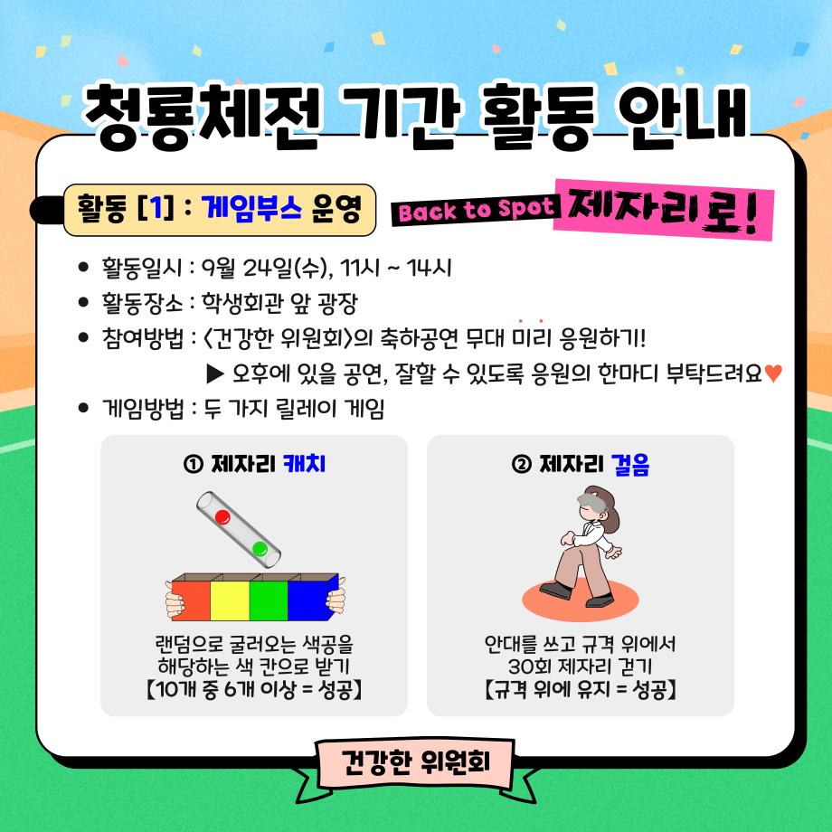 본문 시작 홈으로 공지사항 학생위원회 개요 학생위원회 소개 공지사항 활동결과 홈페이지가이드 프로그램 계획 프로그램 계획 세명대학교 공지사항 프로그램 계획 페이스북 트위터 프린트 [건강한 위원회] back tk spot 제자리로 학생처 258 2025-09-24 목록 이전[맛있는 위원회] 목마르세묭? 다음 [착한 위원회] 약과하나 주면 안잡아 먹지 담당부서 : 장학복지팀 담당자 : - 연락처 : 043-649-1142 최종수정일 : 2024-10-26 만족도조사 만족도 조사 이 페이지에서 제공하는 정보에 대하여 만족하시나요? 매우만족 만족 보통 불만족 매우불만족