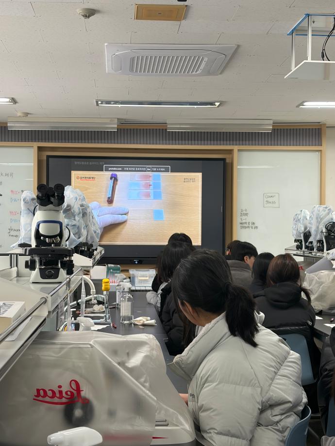본문 시작 신입생 OT 전공체험 임상병리학과 8 2026-02-24 신입생 OT를 맞아 각 동아리에서 전공 체험을 진행했습니다. 임상병리사의 기본 덕목인 혈액 스미어를 직접 실습해보며 신입생들에게 임상병리학의 매력을 알리고 동아리를 홍보할 수 있는 좋은 기회가 되었습니다. 목록 이전초생체 염색, wright 염색, AB형-O형 교차반응 검사 다음 동아리날 만족도조사 만족도 조사 이 페이지에서 제공하는 정보에 대하여 만족하시나요? 매우만족 만족 보통 불만족 매우불만족