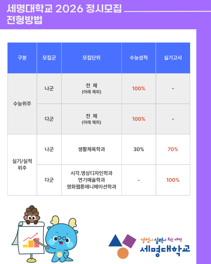 본문 시작 홈으로 커뮤니티 학과소개 교수소개 교육과정 커뮤니티 홈페이지가이드 포토갤러리 학과공지 학사일정 채용정보 및 자료 학생회 포토갤러리 포토갤러리 페이스북 트위터 프린트 세명대학교 2026학년도 정시모집 안내 재난안전학과 863 2025-12-26 목록 이전청룡체전 축구 종목 경기 순간들 다음 2026학년도 신입생 '꿈 설계학기오리엔테이션' 안내 만족도조사 만족도 조사 이 페이지에서 제공하는 정보에 대하여 만족하시나요? 매우만족 만족 보통 불만족 매우불만족