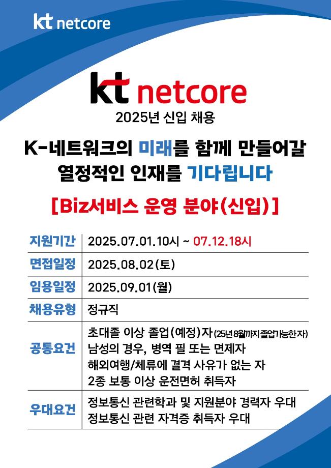 KTnetcore 신입 사원 모집공고