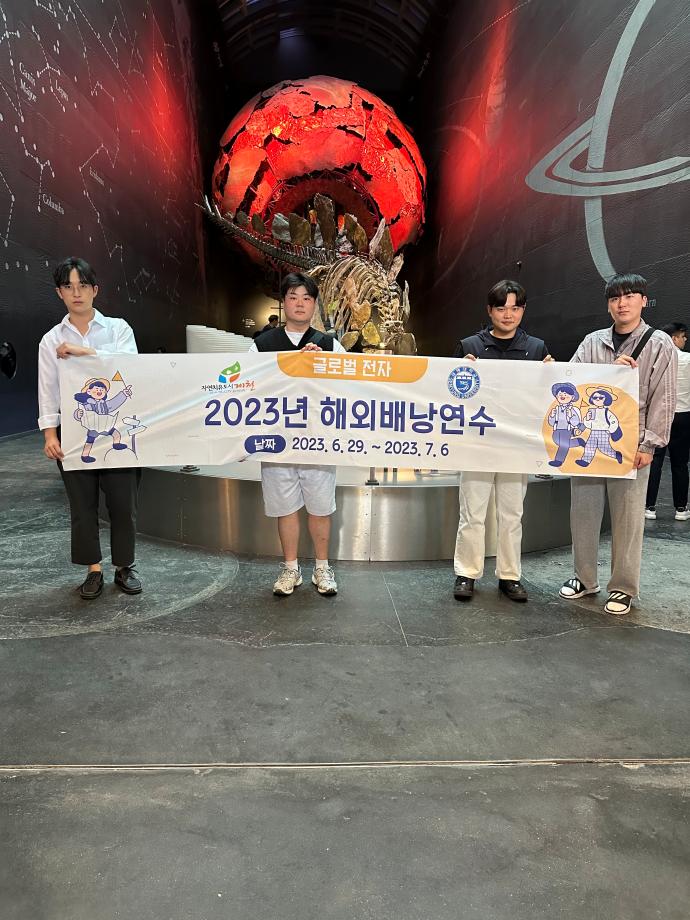 본문 시작 홈으로 커뮤니티 학과소개 교수소개 교육과정 커뮤니티 입학 정보 홈페이지가이드 포토갤러리 학과공지 취업/실습정보 포토갤러리 포토갤러리 페이스북 트위터 프린트 2023년 해외배낭연수 글로벌전자팀 런던을 다녀오다! 전기전자공학과 1830 2023-08-21 2023년 해외배낭연수로 전자공학과 글로벌전자팀(채O원, 윤O호, 송O호, 정O재)에서 런던 자연사박물관, 영국도서관, 런던타워 , 과학박물관 등 알차게 해외배낭연수를 보내고 왔습니다. 목록 다음 2023년 해외배낭연수로 전자공학과 모험하는아이들팀 만족도조사 만족도 조사 이 페이지에서 제공하는 정보에 대하여 만족하시나요? 매우만족 만족 보통 불만족 매우불만족