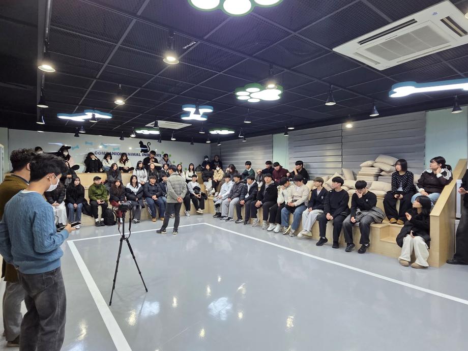 본문 시작 홈으로 커뮤니티 학과소개 교수소개 교육과정 커뮤니티 SNS 홈페이지가이드 학과행사 공지사항 포토갤러리 동아리 학과행사 전공관련정보 학과행사 페이스북 트위터 프린트 2026학년도 반려동물산업학과 신입생 환영회 반려동물산업학과 52 2026-03-12 반려동물산업학과에서는 2026년 3월 9일 신입생 환영회를 진행하였습니다. 목록 이전2026학년도 반려동물산업학과 꿈 설계학기 만족도조사 만족도 조사 이 페이지에서 제공하는 정보에 대하여 만족하시나요? 매우만족 만족 보통 불만족 매우불만족