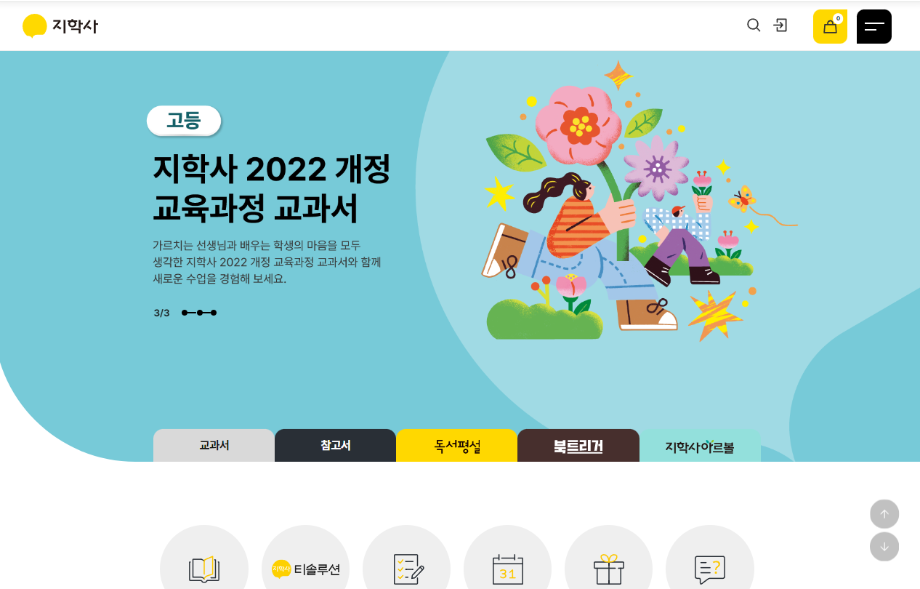 저는 졸업 후 담당 교수님 추천으로 지학사 디자인팀에 입사하여 현재 편집 디자이너로 일하고 있고, 저희 부서는 초, 중, 고 교과서 및 참고서 디자인을 담당하고 있습니다.