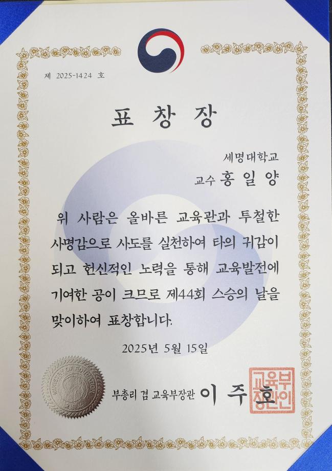 본문 시작 홈으로 학과자랑 학과소개 학과과정 시영소식 입학/취업 AI 학과자랑 SNS소통 홈페이지가이드 학과자랑 학과자랑 갤러리 공모전 동아리 졸업전시회 학과자랑 페이스북 트위터 프린트 교육부장관 표창장-홍일양교수님 시각영상디자인학과 1393 2025-06-07 홍일양 교수님께서 스승의 날을 맞이하여 교육분야에서 교육발전에 기여한 공을 인정받으시어 교육부장관 표창장을 받으셨습니다. 교수님 축하드립니다. 목록 이전2024학년도 학위수여식- 인문대(7개 학과가 속한) 전체 수석 '박*빈'학생 다음 충북과기원, 2025 충청북도 생성형 AI그림 그리기 경진대회- 신희경교수님 대상 수상 담당부서 : 시각영상디자인학과 담당자 : - 연락처 : 043-649-1726 최종수정일 : 2024-10-26 만족도조사 만족도 조사 이 페이지에서 제공하는 정보에 대하여 만족하시나요? 매우만족 만족 보통 불만족 매우불만족