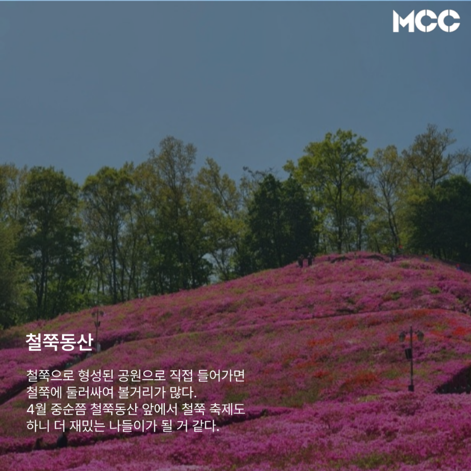 본문 시작 홈으로 MCC News 학과소개 교수소개 학과과정 MCC News MCC SNS 홈페이지가이드 미디어 정보통 학과 및 재학생 교수 및 졸업생 미디어 정보통 미디어 정보통 페이스북 트위터 프린트 💐봄에 나들이 가기 좋은 장소~!🌸 미디어콘텐츠창작학과 1892 2025-04-11 미디어콘텐츠창작학과에서 봄을 맞아 나들이 가기 좋은 장소를 추천해 드립니다. 사랑하는 사람과 함께 나들이 가는 건 어떨까요? 자세한 내용은 미디어콘텐츠창작학과 인스타그램에서 확인해주세요 @smu_mcc 목록 이전제7회 민송백일장 개최 다음 K-REELS 숏폼 컨텐츠 공모전 담당부서 : 미디어콘텐츠창작학과 담당자 : - 연락처 : 043-649-1741 최종수정일 : 2024-10-26 만족도조사 만족도 조사 이 페이지에서 제공하는 정보에 대하여 만족하시나요? 매우만족 만족 보통 불만족 매우불만족