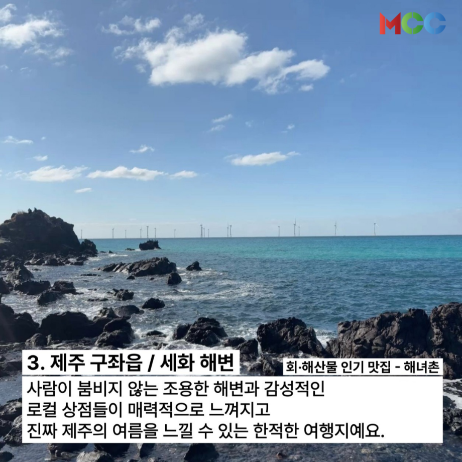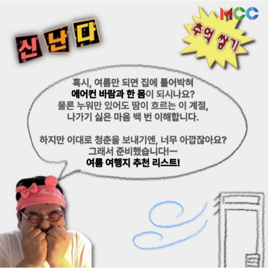 본문 시작 홈으로 MCC News 학과소개 교수소개 학과과정 MCC News MCC SNS 홈페이지가이드 미디어 정보통 학과 및 재학생 교수 및 졸업생 미디어 정보통 미디어 정보통 페이스북 트위터 프린트 여름방학 갈만한 여행지 추천.zip 미디어콘텐츠창작학과 897 2025-07-07 “놀러가고 싶다 격하게..!”😩 🌞여름방학 갈만한 여행지 추천.zip🌞 1.강릉 인목해변 2.통영 욕지도/동피랑마을 3.제주 구좌읍/세화 해변 4.서울 노들섬&한강공원 5.속초 외옹치해변 자세한 내용은 미콘창 인스타그램에서 확인해주세요 @smu_mcc 목록 다음 2025 친환경 에너지 콘텐츠 공모전 다음 미디어콘텐츠창작학과 궁금해?! 담당부서 : 미디어콘텐츠창작학과 담당자 : - 연락처 : 043-649-1741 최종수정일 : 2024-10-26 만족도조사 만족도 조사 이 페이지에서 제공하는 정보에 대하여 만족하시나요? 매우만족 만족 보통 불만족 매우불만족