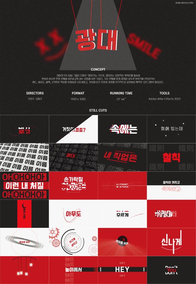 본문 시작 홈으로 학과자랑 학과소개 학과과정 시영소식 입학/취업 AI 학과자랑 SNS소통 홈페이지가이드 졸업전시회 학과자랑 갤러리 공모전 동아리 졸업전시회 2023 졸업작품 2022 졸업작품 2023 졸업작품 2024 졸업전시 2025 졸업전시 2026 졸업전시 2023 졸업작품 페이스북 트위터 프린트 2023년도 시각영상디자인학과 졸업작품-영상 부문(3) 시각영상디자인학과 1827 2023-12-04 목록 이전2023년도 시각영상디자인학과 졸업작품-영상 부문(2) 다음 2023년도 시각영상디자인학과 졸업작품-영상 부문(4) 만족도조사 만족도 조사 이 페이지에서 제공하는 정보에 대하여 만족하시나요? 매우만족 만족 보통 불만족 매우불만족