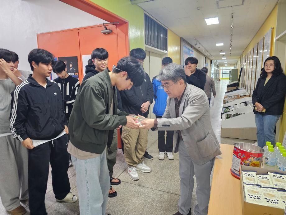 본문 시작 홈으로 커뮤니티 학과소개 교수소개 교육과정 학과 행사 및 활동 커뮤니티 홈페이지가이드 열린정보 학과일정 학과공지 채용정보 및 자료 열린정보 포토갤러리 먹거리, 즐길거리 포토갤러리 사진 사진 영상 사진 페이스북 트위터 프린트 사진 영상 건축학과 중간 고사 간식 이벤트 건축학과 1789 2024-04-22 세명대학교 건축학과(학과장 손창백)는 2024학년도 1학기 중간고사 기간에 학생들을 응원하기 위해 “건축학과 간식 교 수님이 쏜다” 행사를 진행하였다. 목록 이전이포 봉양지역아동센터 초청행사 만족도조사 만족도 조사 이 페이지에서 제공하는 정보에 대하여 만족하시나요? 매우만족 만족 보통 불만족 매우불만족