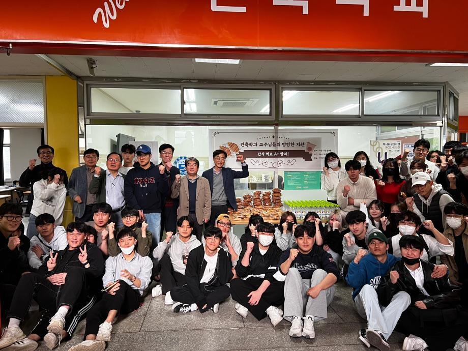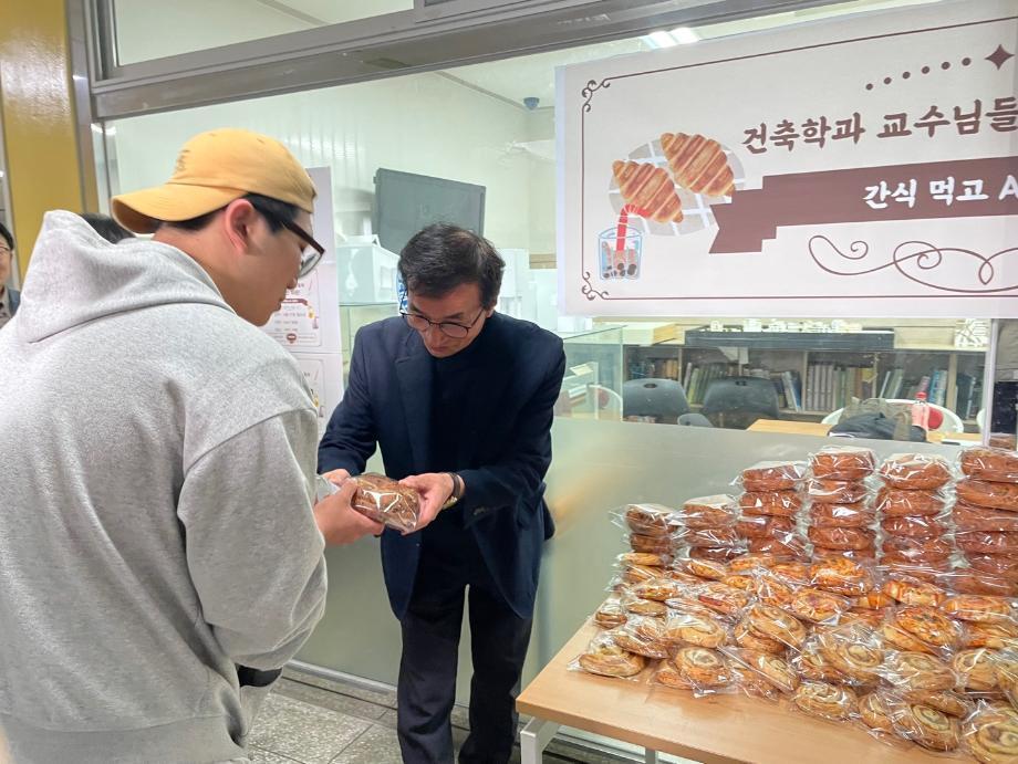 본문 시작 홈으로 커뮤니티 학과소개 교수소개 교육과정 학과 행사 및 활동 커뮤니티 홈페이지가이드 열린정보 학과일정 학과공지 채용정보 및 자료 열린정보 포토갤러리 먹거리, 즐길거리 포토갤러리 사진 사진 영상 사진 페이스북 트위터 프린트 사진 영상 힘내라~ 건축학과~!! 건축학과 1334 2023-04-19 세명대학교 건축학과(학과장 이태구)는 2023학년도 1학기 중간고사 기간에 학생들을 응원하기 위해 “건축학과 교수들 의 빵빵한 지원!” 행사를 진행하였다. 건축학과 교수님들은 학생들에게 빵과 음료수를 전달하면서 중간고사를 잘 준비할 수 있도록 응원의 메시지를 전달하였 고, 학과장 이태구 교수는 “세명대학교 건축학과 학생들의 학교생활 만족도 향상을 위해 학과 교수님들은 항상 고민하고 있다.”고 말했다. 목록 다음 TODAY IS 비타민 DAY !!! “2차 과일 나눔 이벤트” 이전세명대학교 상징조형물 제작 만족도조사 만족도 조사 이 페이지에서 제공하는 정보에 대하여 만족하시나요? 매우만족 만족 보통 불만족 매우불만족