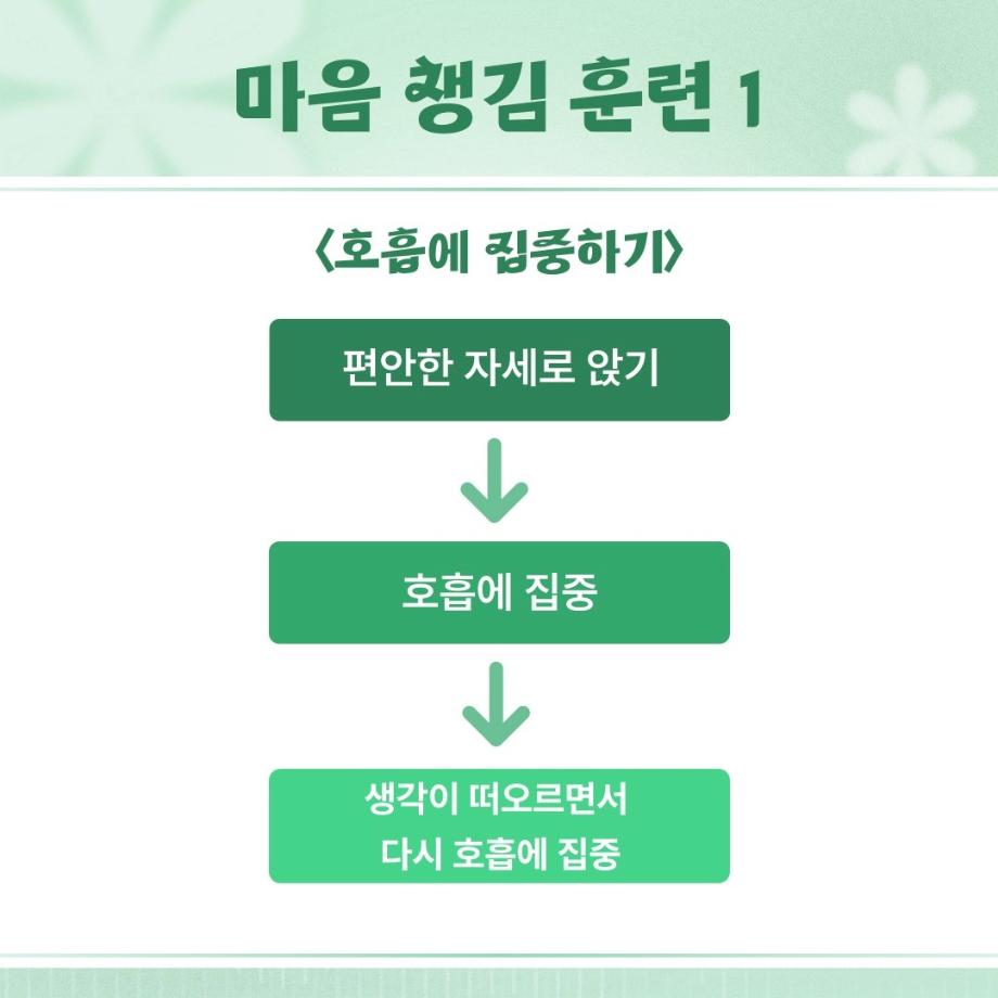 오늘은 시험으로 인한 불안한 마음에 여유를 드리고자 마음 챙김을 알려드리려고 합니다!