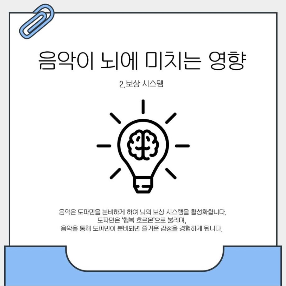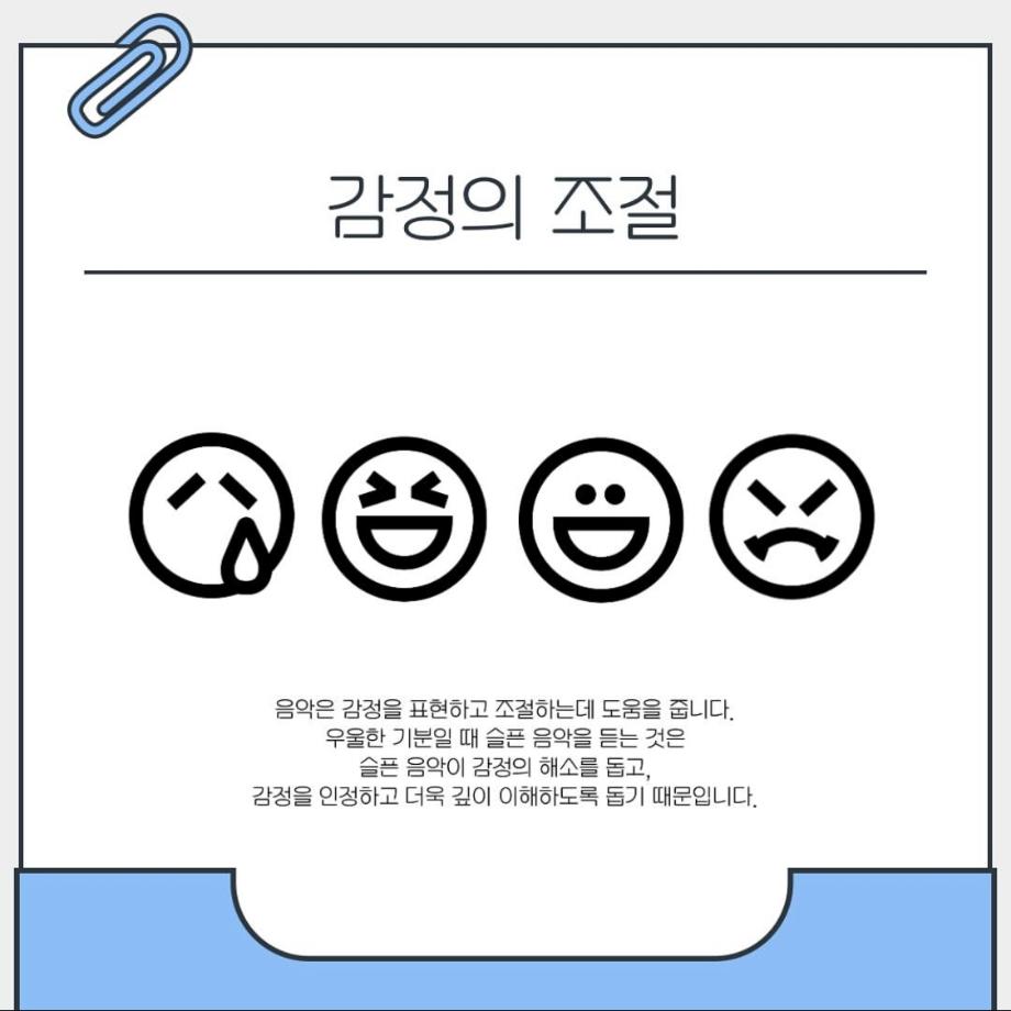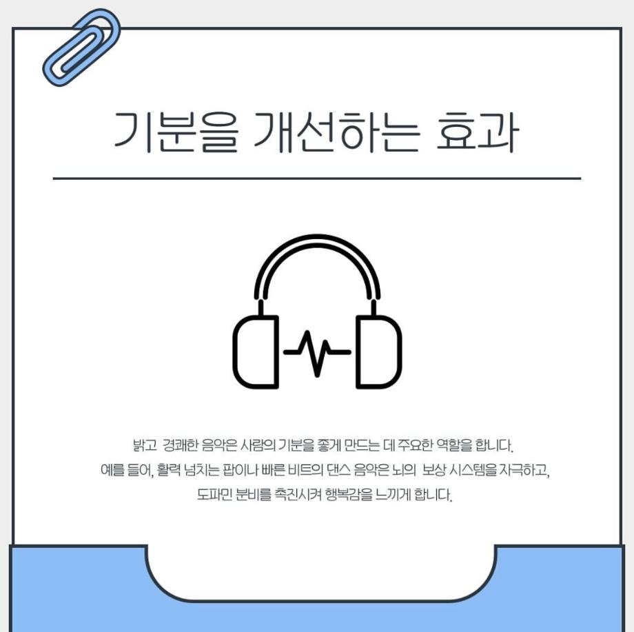 본문 시작 홈으로 학과 커뮤니티 학부소개 교수소개 교육목표 입학안내 학과 커뮤니티 대학원 커뮤니티 홈페이지가이드 학과 갤러리 학과소식 학사일정 학과 갤러리 학과 갤러리 페이스북 트위터 프린트 음악이 심리에 미치는 영향 상담심리학과 1398 2025-05-17 안녕하세요 세명대학교 상담심리학과 학생회 오비르입니다 ! 우리가 매일 듣는 음악이 심리에 미치는 영향이 있다는 사실을 알고 계신가요? 음악은 뇌의 편도체, 보상 시스템을 자극해 감정을 조절하는 역할을 합니다. 마음이 복잡할 때 음악을 통해서 자신의 감정을 인정하고 이해해보는 것은 어떨까요? (~˘▾˘)~♫•*¨*•.¸¸♪ 목록 이전운동과 상담심리 다음 상담심리학과 MT 일정 안내 만족도조사 만족도 조사 이 페이지에서 제공하는 정보에 대하여 만족하시나요? 매우만족 만족 보통 불만족 매우불만족