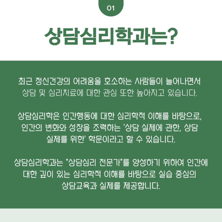 본문 시작 홈으로 학과 커뮤니티 학부소개 교수소개 교육목표 입학안내 학과 커뮤니티 대학원 커뮤니티 홈페이지가이드 학과 갤러리 학과소식 학사일정 학과 갤러리 학과 갤러리 페이스북 트위터 프린트 상담심리학과 학과 소개 상담심리학과 1758 2024-07-24 목록 이전상담심리학 도서 추천 다음 상담심리학과 교과과정 & 전공 정보 만족도조사 만족도 조사 이 페이지에서 제공하는 정보에 대하여 만족하시나요? 매우만족 만족 보통 불만족 매우불만족