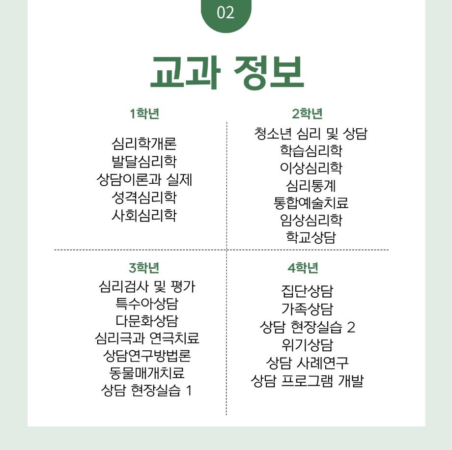 본문 시작 홈으로 학과 커뮤니티 학부소개 교수소개 교육목표 입학안내 학과 커뮤니티 대학원 커뮤니티 홈페이지가이드 학과 갤러리 학과소식 학사일정 학과 갤러리 학과 갤러리 페이스북 트위터 프린트 상담심리학과 교과과정 & 전공 정보 상담심리학과 1898 2024-07-25 목록 이전상담심리학과 학과 소개 다음 상담심리학과 입시모집요강 및 인재상 만족도조사 만족도 조사 이 페이지에서 제공하는 정보에 대하여 만족하시나요? 매우만족 만족 보통 불만족 매우불만족
