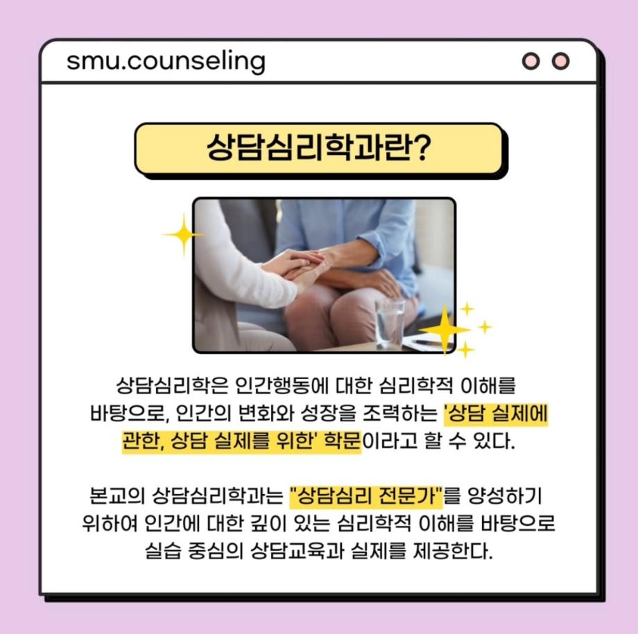 안녕하십니까 세명대학교 상담심리학과입니다!