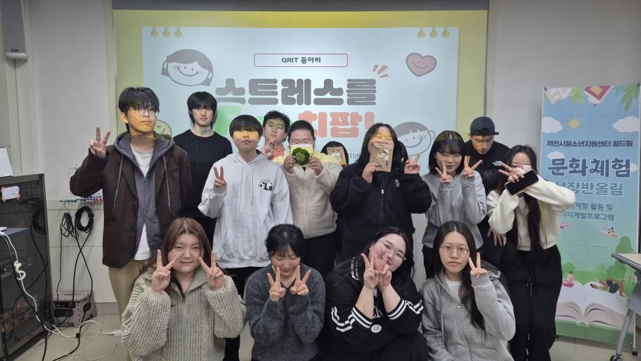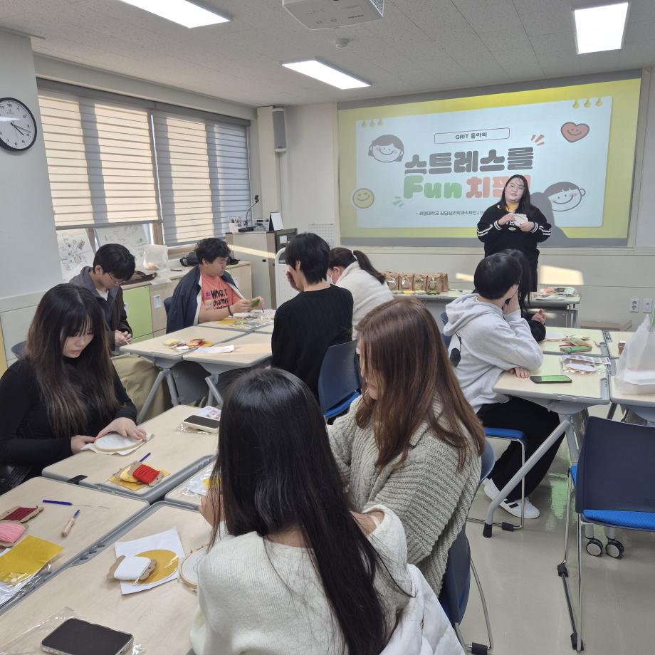 본문 시작 홈으로 학과 커뮤니티 학부소개 교수소개 교육목표 입학안내 학과 커뮤니티 대학원 커뮤니티 홈페이지가이드 학과 갤러리 학과소식 학사일정 학과 갤러리 학과 갤러리 페이스북 트위터 프린트 GRIT 동아리 봉사활동 상담심리학과 472 2025-12-23 안녕하십니까 세명대학교 상담심리학과입니다. 상담심리학과 동아리 GRIT은 제천시청소년상담센터에 방문해서 학교 밖 청소년을 대상으로 '스트레스 FUN치팝'-펀치니들 활동을 진행했습니다! 🧶🪡 펀치니들 키트로 활용해 컵받침을 만들며 학교 밖 청소년의 교우관계 증진시키고 학업 스트레스를 완화하고자 기획된 활동이었는데요! 참여 청소년들에게 따뜻한 기억으로 남았기를 바랍니다 :) 목록 이전2025학년도 2학기 기말고사 다음 심리상담에 대한 오해 만족도조사 만족도 조사 이 페이지에서 제공하는 정보에 대하여 만족하시나요? 매우만족 만족 보통 불만족 매우불만족