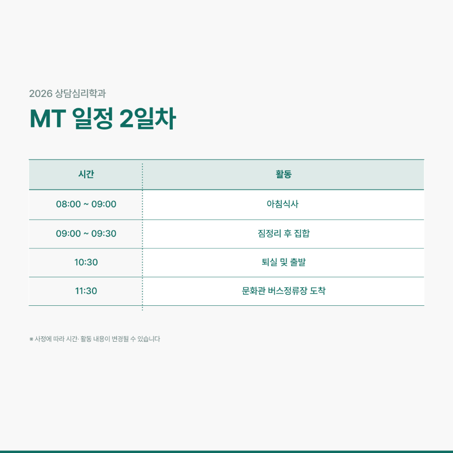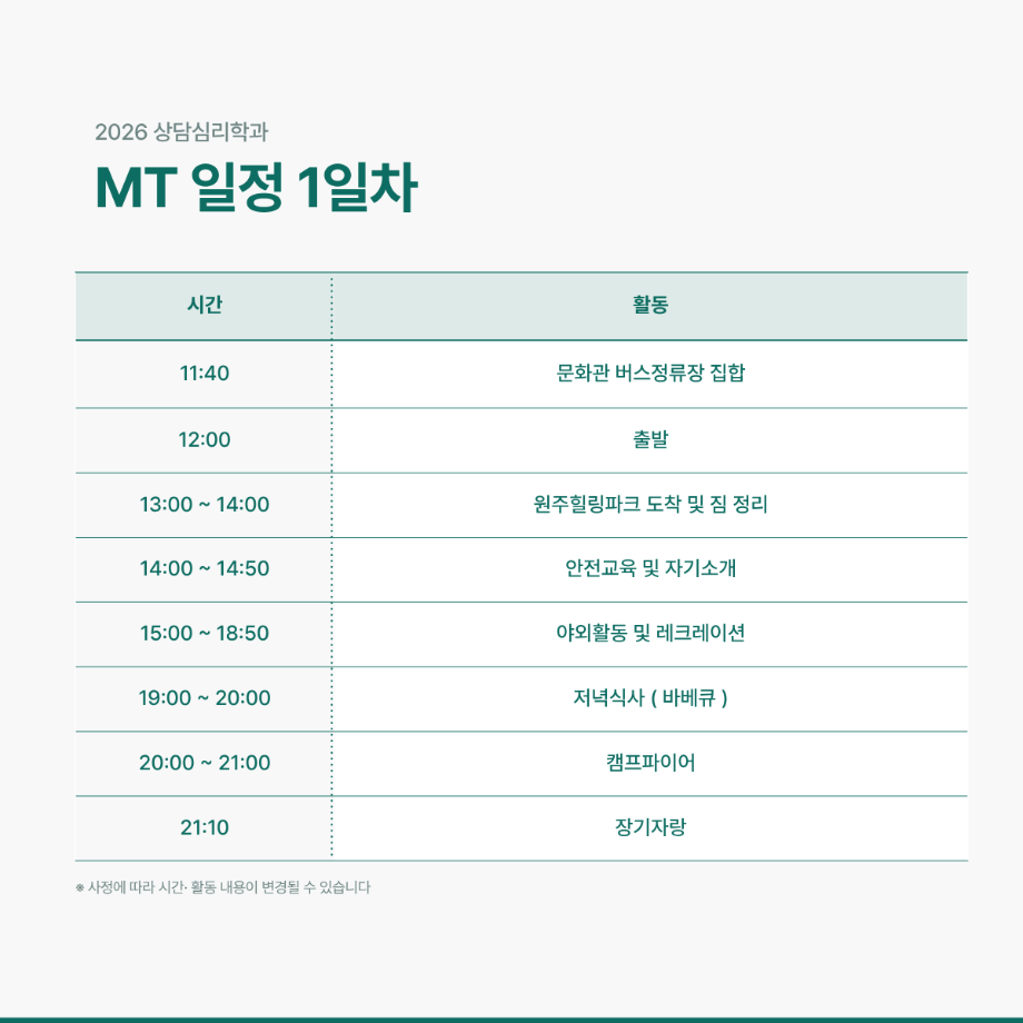 2026학년도 상담심리학과 MT일정 안내드립니다😀