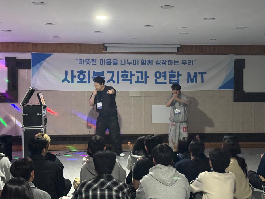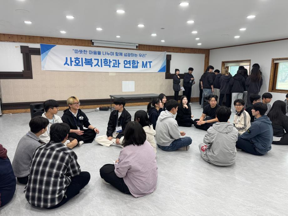 본문 시작 홈으로 커뮤니티 학과소개 교수소개 교육과정 현장실습 및 취업정보 커뮤니티 홈페이지가이드 포토갤러리 학과공지 학사일정 학생회 동아리 학생 소통 광장 포토갤러리 전공자료실 서식자료실 포토갤러리 페이스북 트위터 프린트 [사회복지학과] 2026학년도 연합 MT 사회복지학과 26 2026-04-07 지난 4/2~4/3 사회복지학과 연합 MT를 원주 힐링파크로 다녀왔습니다. 목록 이전[사회복지학과] 2026학년도 신입생 환영회 만족도조사 만족도 조사 이 페이지에서 제공하는 정보에 대하여 만족하시나요? 매우만족 만족 보통 불만족 매우불만족