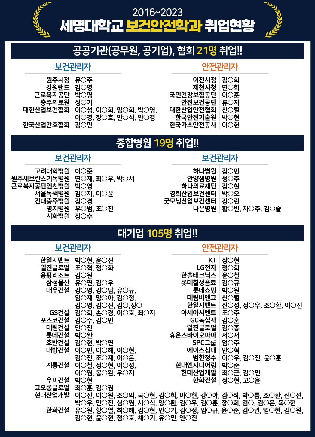 · 산업안전보건공단, 고용노동부보건직 산업안전감독관(7급), 국민건강보험공단, 산업안전보건연구원, 한국철도공사